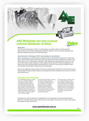 The Valeo story started back in 1923 in a small workshop just outside of Paris. Over 90 years later Valeo is now one of the World-Leading Global Automotive suppliers in over 30 Countries supplying to the Automotive Manufacturing sector and Aftermarket sales.